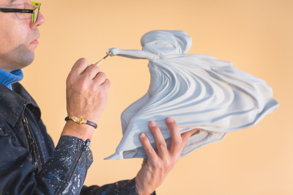 Every piece is a miniature recreation of Lorenzo Quinn’s sculptures with the immense emotional statement involved.