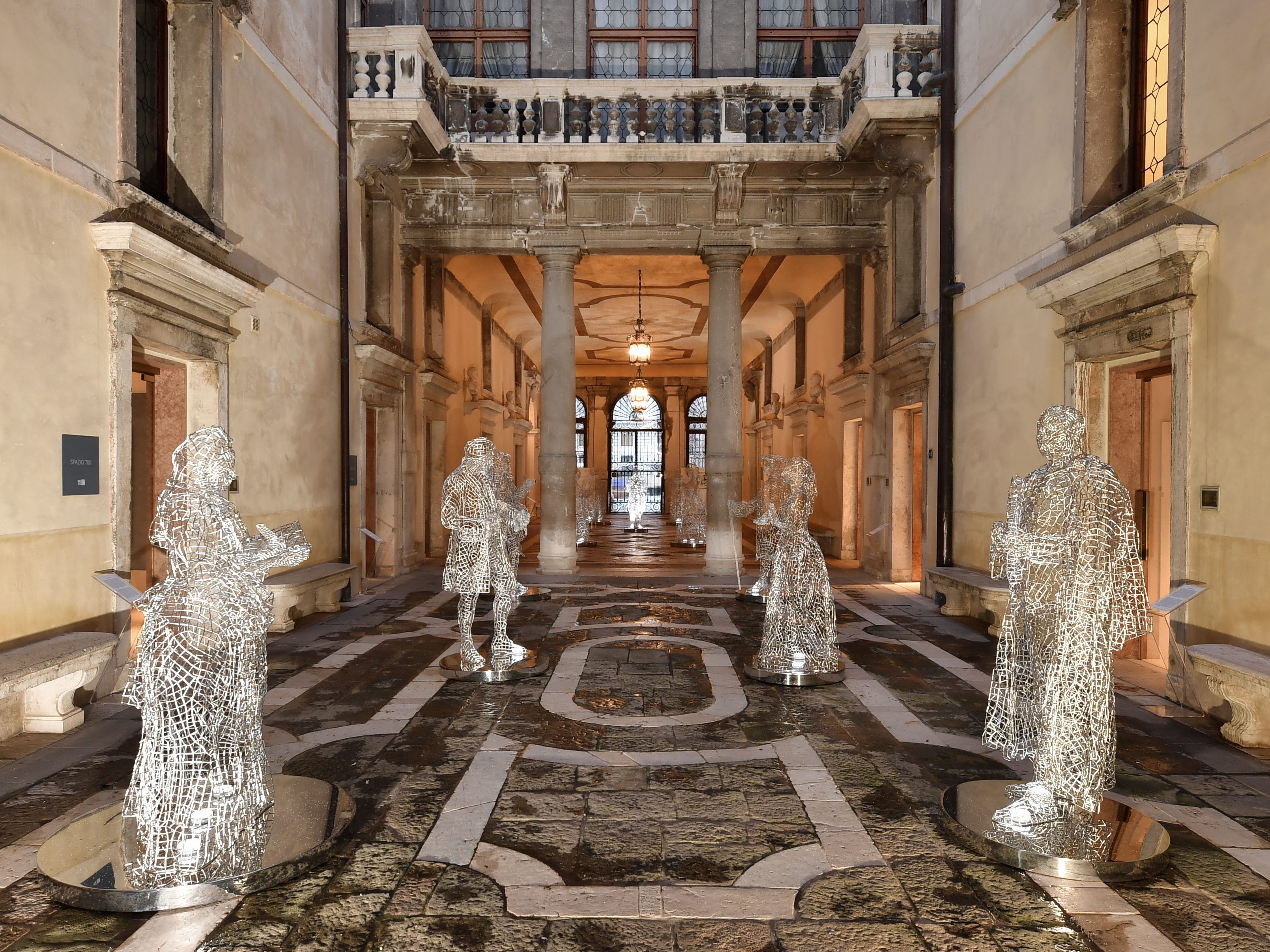 Consisting of 15 statues made of mesh, a weave made up of thousands of metal links, the work represents some of the most significant Souls who followed one another over the centuries of the Serenissima, sealing the union and symbiosis between the City with all artistic expressions which featured those Venetians who made it immortal.